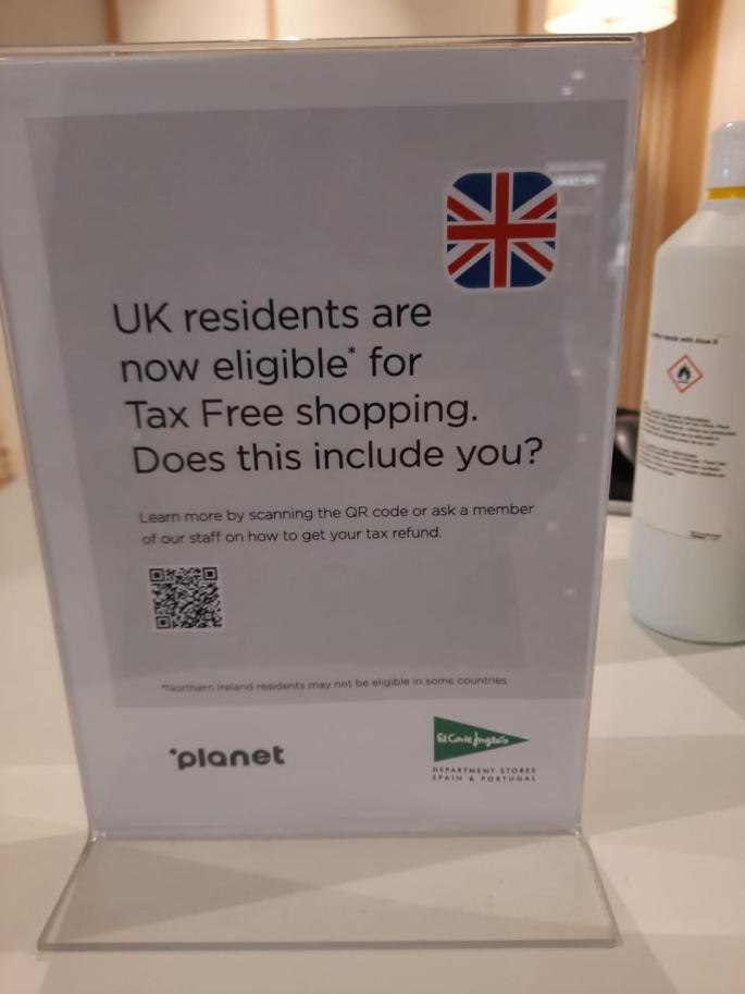 Since Britain left the European Union , British tourists can reclaim the VAT on all articles they purchase. El Corte Ingles branches in Majorca have already started to advertise this discounted scheme with large signs placed at the entrance of their main stores.